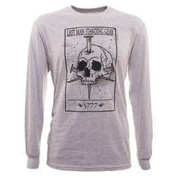 Death Card Skull comfortable, loose-fitting long sleeve shirt from LSM Gear with print. "Death Card" motif with a skull and three Roman nails on the front and LMS Gear print on the back. Ideal as a base layer for colder days.