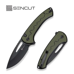 Squiggy Black/Green G10, Black, modern EDC folder with button lock and two opening methods. Ergonomic Handle, stainless steel Blade and distinctive design make it a practical and distinctive tool for everyday use.