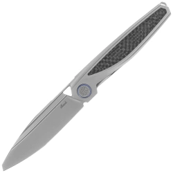 Baidi T Titanium/Carbon Fiber, Bead Blasted, a premium folding knife that combines an M390 steel blade with a titanium frame and titanium and Carbon Fiber composite grips. Perfect precision, refined style and EDC functionality.