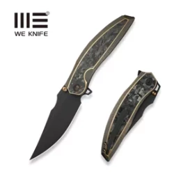Quinseris Bronze Titanium/Shredded Carbon Fiber, Black Stonewashed, a large EDC folder, utilitarian and elegant. Comfortable titanium and carbon fiber handle, head made of excellent Böhler M390 steel, Nested Frame Lock.