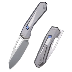 RT-Agile Peregrine Falcon Ceramic Sandblasting Titanium, Hand Grinding Satin / Pearlescent - a modern Reverse Tanto folding knife in M390 steel, with a monolithic titanium handle and easy removal system. An engineering masterpiece of EDC.