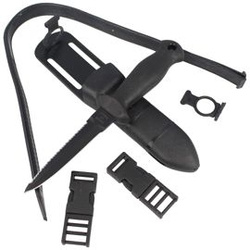 TEKNO BLACK compact back-up dive knife with MAC full tang design. It lies perfectly in the hand and is suitable for use during diving trips and on land. Blade made of polished stainless steel W 1.4116 with high corrosion resistance.