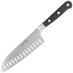 Santoku Granton Edge Black Polymer, Polished, an advanced Santoku kitchen knife with a forged blade and Granton Edge system, ideal for working with vegetables, meat, and fish. Precision cutting, light handling, and full control in one tool.
