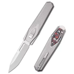 Swordfish Titanium/Carbon Fiber, Pearlescent. An innovative knife from the young Remette Knives manufactory. OTF with an extendable blade made of Böhler M390 steel thanks to the force of gravity. Handle made of titanium with an smarta blade release system