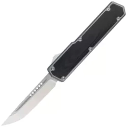 Vigor V2 Carbon Fiber / Grey Aluminum, Satin automatic OTF knife with front extension blade. It works in D/A (Double Action) mode with a slider to extend and retract the blade. Strong construction, reliable operation reasonable price. Bestseller!