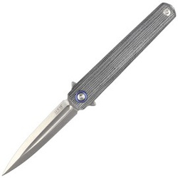 Trogon Gray Titanium, Silver Bead Blasted heavily built EDC folder, a design by renowned custom knife maker Brian Brown. Distinctive blade cut, titanium handle, framelock. And all in a compact size!