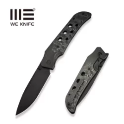 WE-Guthrie Black Titanium/Rose Carbon Fiber, Black Stonewashed, a large EDC folding knife designed by Jason Guthrie. Comfortable Handle with titanium bolsters and carbon fiber, utilitarian 20CV CPM steel Blade, strong construction.