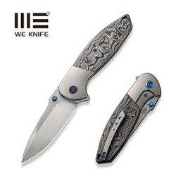 Falcaria Blue Titanium/Aluminum Carbon Fiber, Hand Rubbed Satin, an intriguing design by Polish knifemaker Maciej Torbe for WE Knife. Folding knife with a full-size Wharncliffe blade, made of excellent CPM 20CV steel. Ergonomic titanium handle.