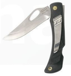 Crocodile Black ABS, Mirror Finish with Clip designed for everyday use, a medium-sized folding knife at a great price. Compact design, light weight, ideal EDC. Polished steel blade, comfortable thumb ramp, Back-Lock.