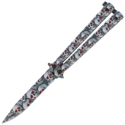 Balisong Skulls Black Aluminum, Black 3Cr13Mov (02201) - a distinctive butterfly knife with dagger blade, blackened 3Cr13Mov steel and skull print. Striking design, durable construction, dynamic handling.