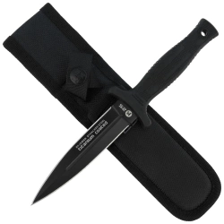 Botero Dagger Black Rubber, Black Titanium - a full-size tactical dagger knife from K25 with a Black Titanium-coated 7Cr17MoV steel blade and a textured rubber handle. Equipped with a Quick Release sheath.