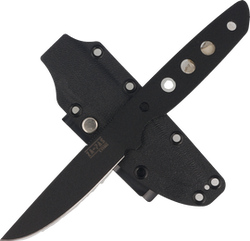 N.K.1 Black neck knife is a knife with a monolithic construction, made of one piece of steel. Versatile, utility blade made of Böhler N690 steel, with a hollow on the spine for precise work. Multi-position kydex sheath.