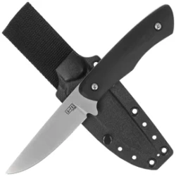 Swick 5 Large Black G10, Satin Spyderedge neck knife design by Sal Glesser, founder of Spyderco. LC200N stainless steel blade. Ergonomic handle with 26.1 mm finger hole and G10 composite liners. Sheath is made of Boltaron thermoplastic. An excellent tool!