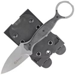 922 Neck Line Black G10, Black Stonewashed, fixed blade type knife. Designed by Russ Komer for Maserin Monolithic construction in Böhler N690 steel, kydex sheath equipped with Tek-Lok style clip for carrying in different positions. A hit!