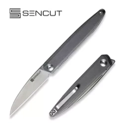Traxler Gray G10, Satin compact EDC folding knife made by Sencut. Easy-to-carry, compact EDC knife with a durable, wide blade suitable for heavy use. Bestseller!!!