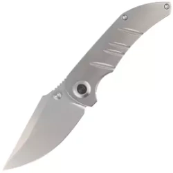 Chnops Sandblasted Titanium, Damasteel is a slim gentlemans folder knife designed by Riccardo Gobbato. Beautiful solid titanium grips, titanium clip, backspacer and screws, Damasteel DS93X Gysinge blade. An excellent choice for EDC!