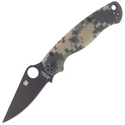 Para Military 2 G-10 Camo Black Blade, the second generation of the iconic Spyderco knife Military compact version in the digital camouflage. Improved, improved handle ergonomics, extended blade tip...