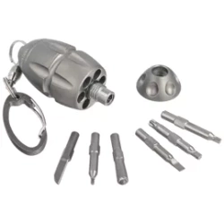 Eggie Grey Titanium, in its titanium interior conceals 6 bits with 7 tools and a holder with a magnet. A convenient snap hook makes it easy to attach the key ring to your keys. The sleek microtool was designed by Ruslan Sarychev for LionSteel.