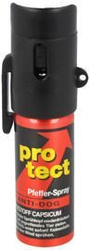 ProTect Anti-Dog 15 ml (Anti Hund) gas thrower by KKS for defense against aggressive animals, including dogs. The squad also guarantees defense against an attacker or a group of attackers. The CONE nozzle ejects an irritant in the form of a cloud. Clip