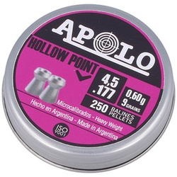 Hollow Point .177 heavy pellets with a BC of 0.022 at an excellent price! Many believe that a 6.35mm caliber pellet is necessary for target stopping power. However, Apolo's 4.5mm caliber is equally effective for stopping and breaking targets. Pack 250 pcs