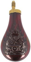 DP520 Colt Pattern Powder Flask by Davide Pedersoli features an adjustable spout for precise powder measuring. For black powder firearms of various calibers, including rifles, pistols, revolvers. Made of lacquered copper and decorated battle scene motif.