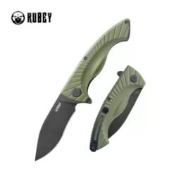 Timberwolf Green G10, Blackwashed excellent EDC folder from Kubey. Utility Blade inspired by the kukri shape in Sandvik 14C28N steel. Ergonomic textured G10 composite handle. Popular Liner Lock secures the knife from folding.