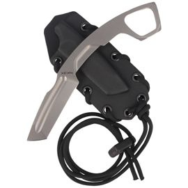 N.K.3 BLACK oparty na modelu N.K.2 neck knife wyróżnia się dłuższą głownią. Z obu stron klingi blood-graining slot, rowki zbrocza. Pochwa przystosowana do zawieszania na szyi, opcjonalnie na kamizelkę lub pas, co umożliwia używanie noża jako clinch pick’a