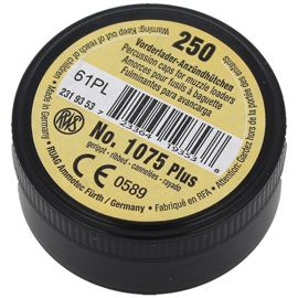 Doskonałe kapiszony do kominków w dużym opakowaniu 250 szt. niemieckiej marki RWS 1075 (4 mm). Przeznaczone do broni czarnoprochowej: rewolwerów m.in. firmy Pietta (Remington, Colt Peacemaker, Colt Navy, Colt Army, Colt Paterson), pistoletów i karabinów