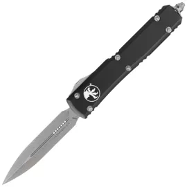 Ultratech D/E Black Aluminium, Tactical P/S pełnowymiarowy nóż automatyczny OTF z serii Ultratech z taktycznym wykończeniem ostrza. Pracujący w trybie D/A wyposażony w piekielnie szybki mechanizm wysuwający ostrze dagger. Projekt Tony Marfione z Microtech