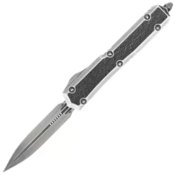 Ultratech D/E Black Aluminium, Tactical pełnowymiarowy nóż automatyczny OTF z serii Ultratech z taktycznym wykończeniem ostrza. Pracujący w trybie D/A wyposażony w piekielnie szybki mechanizm wysuwający ostrze dagger. Projekt Tony Marfione z Microtech.