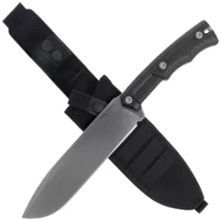 Numen Black G10, Satin, duży nóż survivalowy projektu Daniele Dal Canto, profesjonalnego instruktora technik przetrwania. Potężna klinga ze stali Böhler N690, budowa full tang. Rękojeść z kompozytu G10, pochwa z cordury z mocowaniem M.O.L.L.E.