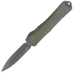 Manticore X D/E Green Frag Aluminum, Black DLC pełnowymiarowy nóż automatyczny OTF z serii Manticore. Pracujący w trybie D/A, wyposażony w piekielnie szybki mechanizm wysuwający ostrze. Projekt Tony Marfione Jr. właściciela Heretic Knives