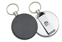 Retraktor Barbaric z klipsem Black ABS / Mirror Steel, 100cm (16248) – kompaktowe akcesorium EDC z rozwijaną linką długości 100 cm, wytrzymałą obudową z ABS. Idealne do organizacji wyposażenia w terenie i na co dzień.