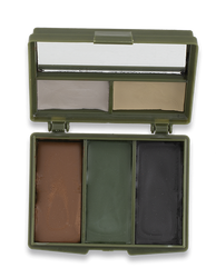 Farba maskująca Mil-Tec Woodland – trzy kolory (czarny, zielony, brązowy) w kompaktowym etui z lusterkiem. Odporna na wilgoć, łatwa w aplikacji, idealna do kamuflażu w terenie.