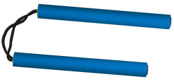 Training Nunchaku Blue Foam – lekkie, treningowe nunchaku Martinez Albainox, wykonane z pianki EVA i połączone nylonowym sznurem. Bezpieczne narzędzie do nauki technik sztuk walki.