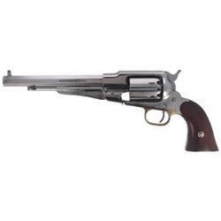 1858 Remington New Model Army Steel kal. .44. Wersja (LC) z moletowanymi okładkami chwytu. Rewolwer ładowany odprzodowo ze stalową hartowaną ogniowo zamkniętą ramą (o większej sztywności) umożliwiającą wyjęcie bębna i założenia nowego, już załadowanego.