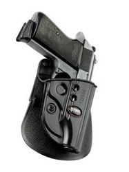PPND RT (Roto) kabura otwarta Fobus prawa. Do Walther PP, PPK, PPKS (old). FEG 380 PMK. ND / Evolution-2 nowa generacja z dodatkową śrubą przy kabłąku regulującą siłę docisku kabury. Wpływa to na siłę z jaką broń jest trzymana w kaburze lub jest dobywana.