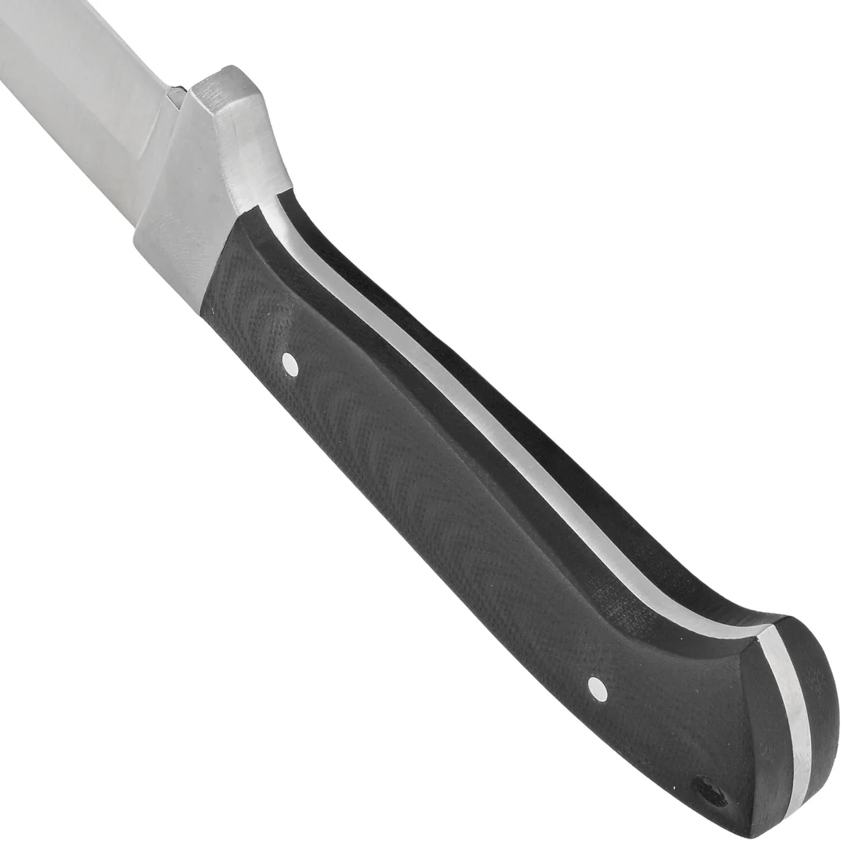 Handle - profiled under the palm, covered with non-slip, waterproof linings made of micarta, emphasizes the exclusive look. The knife fits very well in the hand, does not slip, it can be easily operated in all conditions. Bolster and rivets made of stainless steel. In the back of the handle was placed a gap allows the security rope to be fitted.
