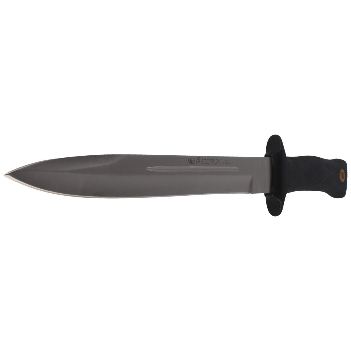 - SCORPION-26W Mueller 420H universal fighting knife will withstand all conditions. Blade with zbroczem, fake Spear Point blade coated with a resistant non-reflective Satin Finish coating (semi-matte) eliminating glare. Handle elastomer.