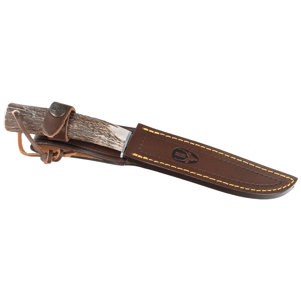 Handle - covered with natural facing from deer stag, providing an exclusive look and comfortable grip. At the back of the handle, a gap with interwoven leather thong.