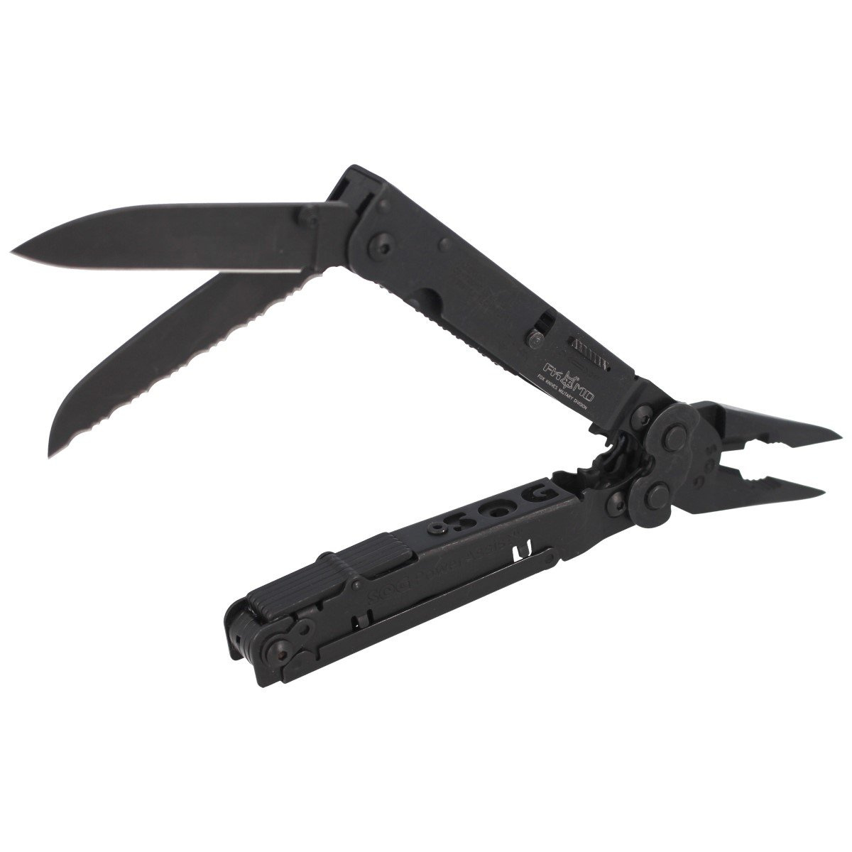 B66N - PowerAssist, multifunctional tool from the company SOG - sixteen functions in one tool. Solid, full-size coated with non-reflective matte powder coating Black Oxide, used in multitools for uniformed services. The advantage of the model is the access to the blades (smooth and serrated) without having to disassemble the whole tool. Wmade of stainless steel 420 Stainless Steel.
