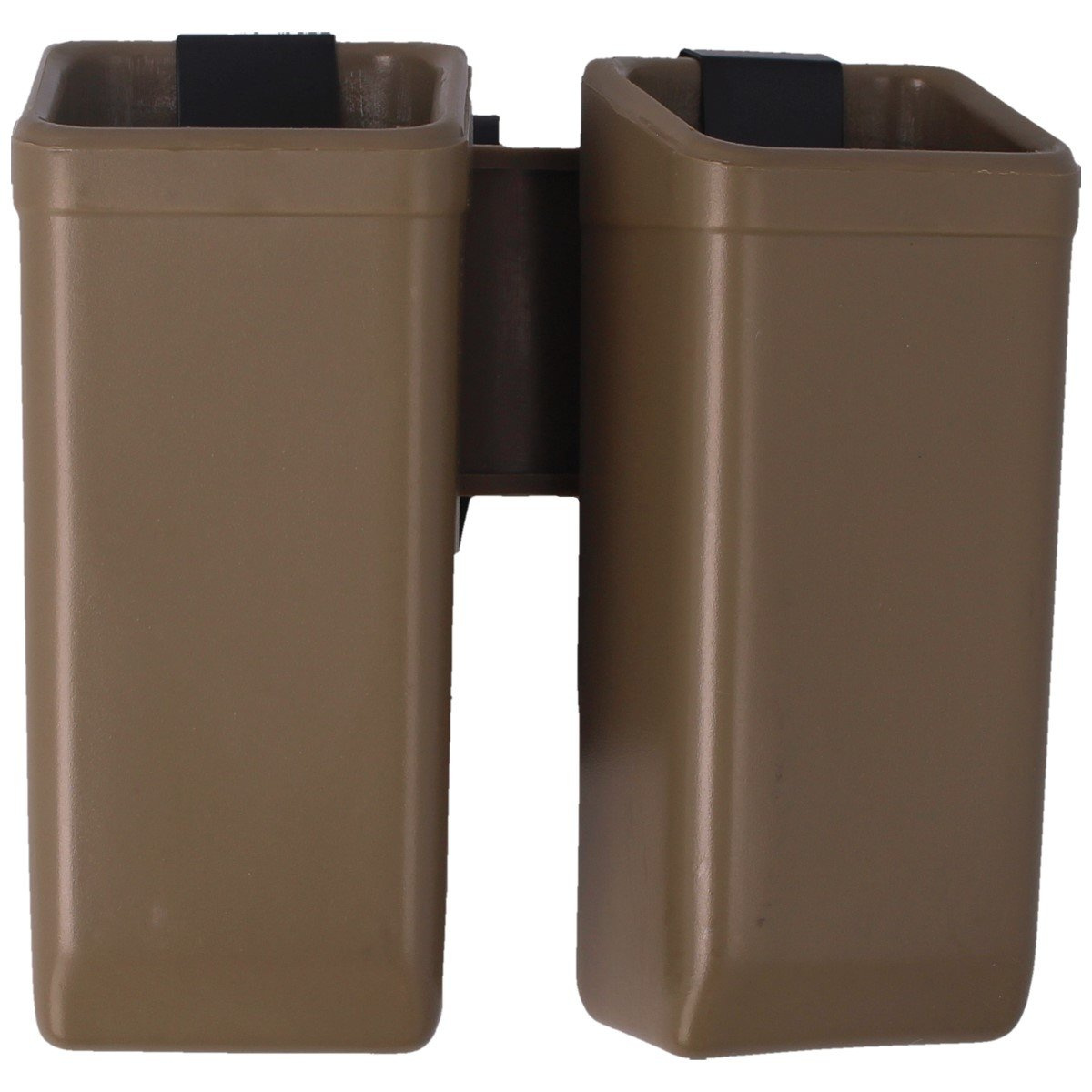 Open-type polymer loaders for 2 double-row magazines cal. 9mm/.40/.45 with belt fastening type UBC-03 in khaki color by Czech company ESP. The internal spring holds the magazine, allows quick removal of the magazine. Fits Glock, Walther P99, H&K 9mm/.40, Beretta 92/96/M9, Springfield XD, Ruger, Browning HP, SIG Sauer P226/P229, S&W MP9, CZ 75 Compact, Taurus 92/99.