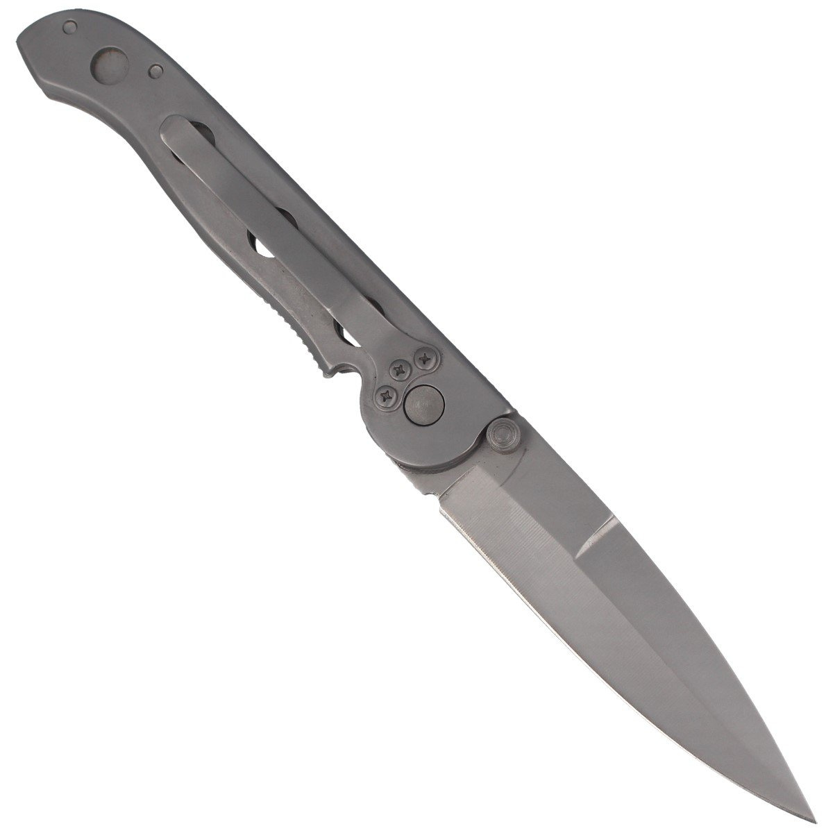 Handle - profiled, covered with matt aluminum cladding. Weight reduction was achieved by using holes on the cover surface. The folder is equipped with a single-position metal clip screwed with torx screws that allows you to move the knife in the tip-down position.