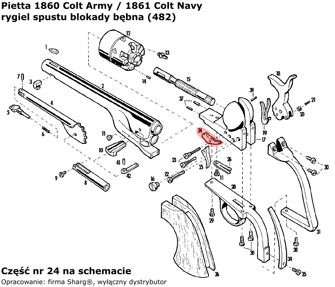 - 482 (service) Pietta drum lock trigger bolt. For the 1851 Colt REB Nord Navy black-rifle revolver, 1860 Colt Army and 1861 Colt Navy.