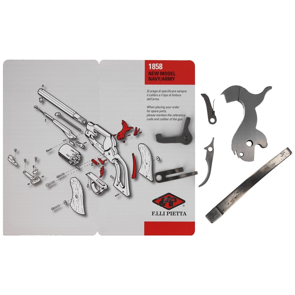 - AC077 (service), set of necessary consumables for Pietta Arms 1858 Remington New Model Navy / Army Stainless Steel .36 / .44 inch percussion revolvers.