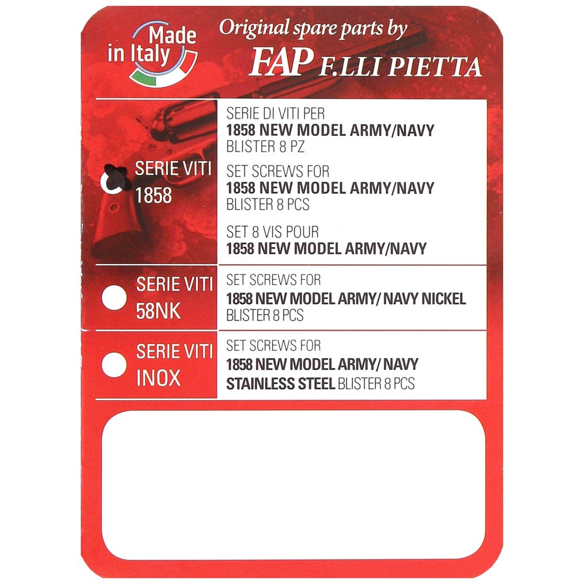- SERIES VITI 1858, repair kit 8 pcs of bolts for Black Powder Revolvers 1858 Remington New Model Army .44 inch / Navy .36 inch by Pietta Arms.