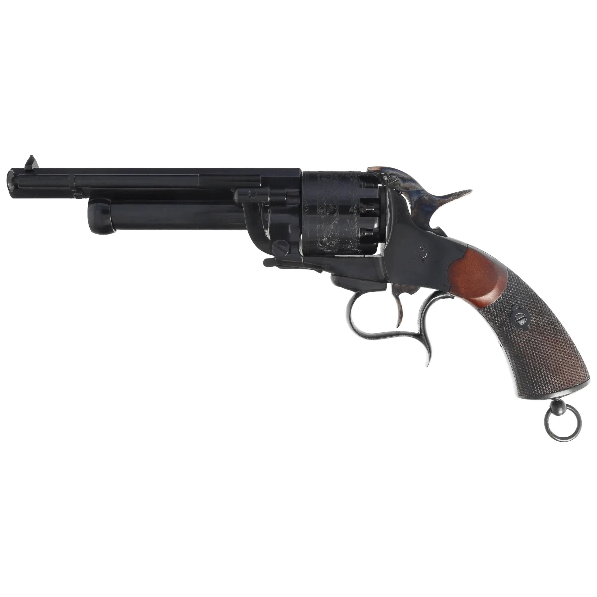 • LeMat Cavalry is a percussion cap, revolver featuring a steel frame, highly sought after by collectors. Issued to Confederate forces during the American Civil War. The cavalry variant comes equipped with a spur-trigger guard and a lanyard ring.