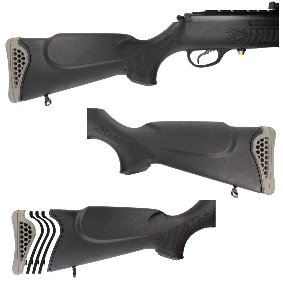 Settlement - ergonomic made of durable polymer in black color. Fluting on the pistol grip and in the center of the bed provides a secure grip and serves a decorative function. On the flask there is a contoured cheek pad of the monte carlo type that makes it easier to fold up to shoot as well as to aim. The flask is adapted for both right and left-handed people. Vented rubber footTrioPad® (three types of interchangeable feet) at the end of the flask allows you to adjust the length of the flask and absorb the recoil energy after a shot is fired.