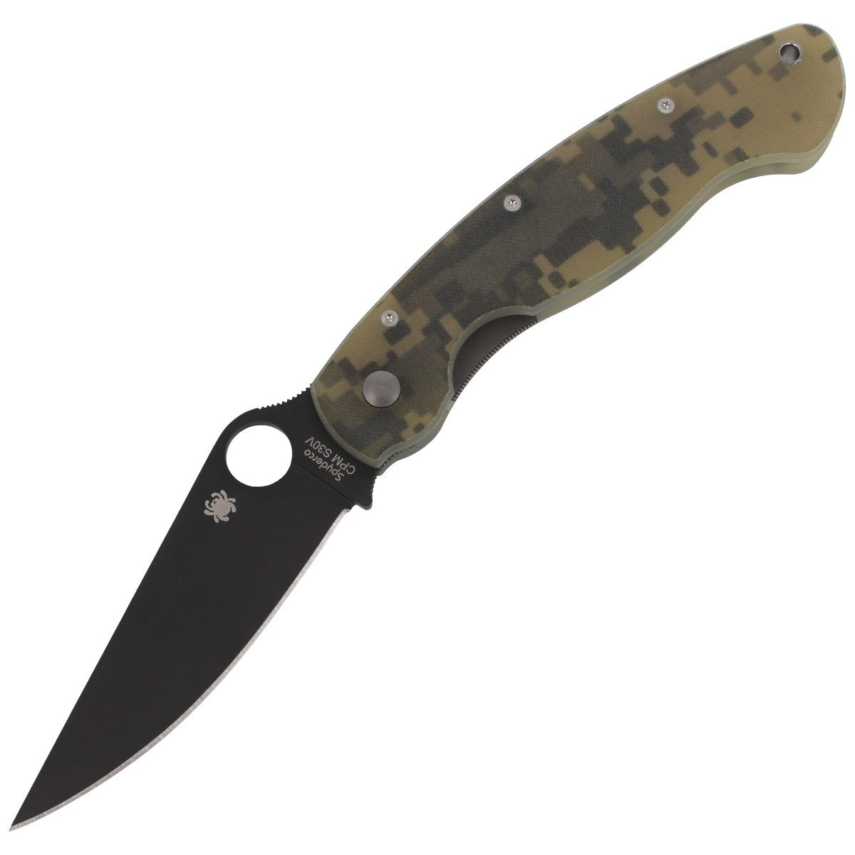 Military G-10 Camo / Black Blade, designed for heavy use by Spyderco owner Sal Glesser, as an answer to the question: what folding knife would you give your son if he went into the military?