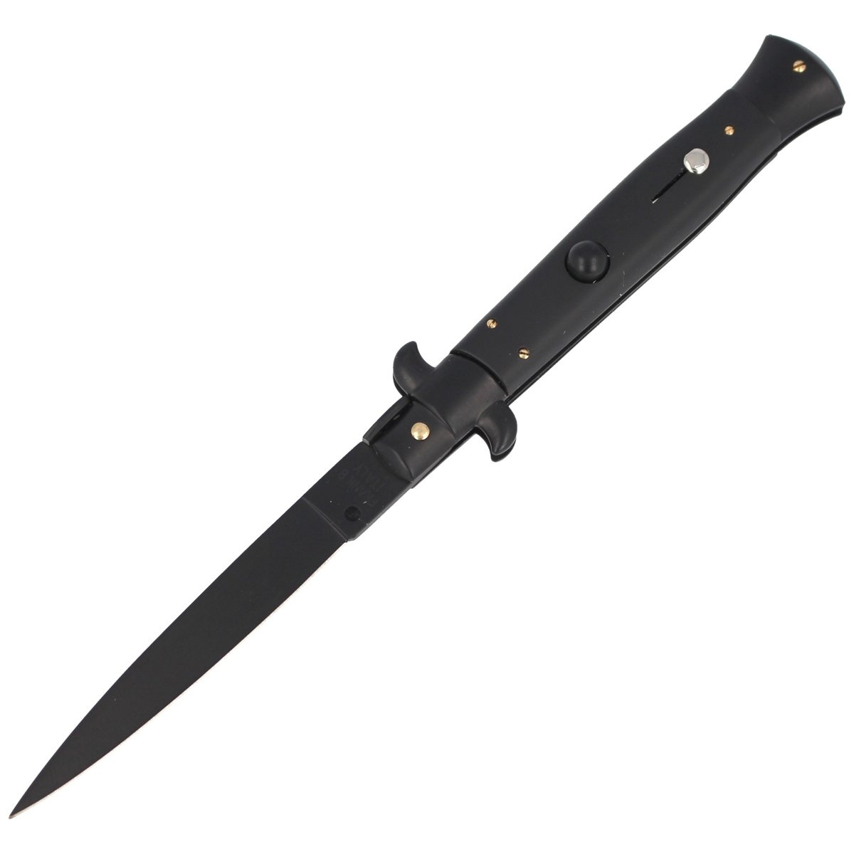 Classic Italian Stiletto Black Dagger 23 cm, traditional Italian spring knife. Completely hand-made according to the principles of Italian craftsmanship, Frank Beltrame Stiletto knives have become famous all over the world due to their extreme lightness and durability. Thanks to its properties, the Italian dagger is suitable for use in any environment, from hunting to camping. A solid, durable construction, a strong spring opening the blade is a feature of the classic Italian spring knives Frank Beltrame.